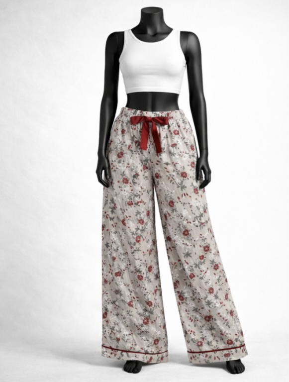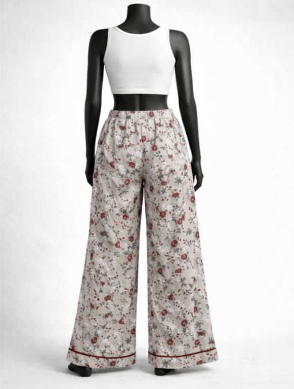 Floral Beige Palazzo with Tie Waist, Floral Beige Palazzo with Tie Waist designed for relaxed everyday comfort and breathable summer wear with elegant printed detailing