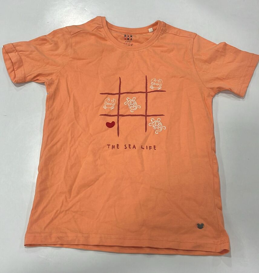 A casual orange cotton T-shirt with playful sea-life-themed print
