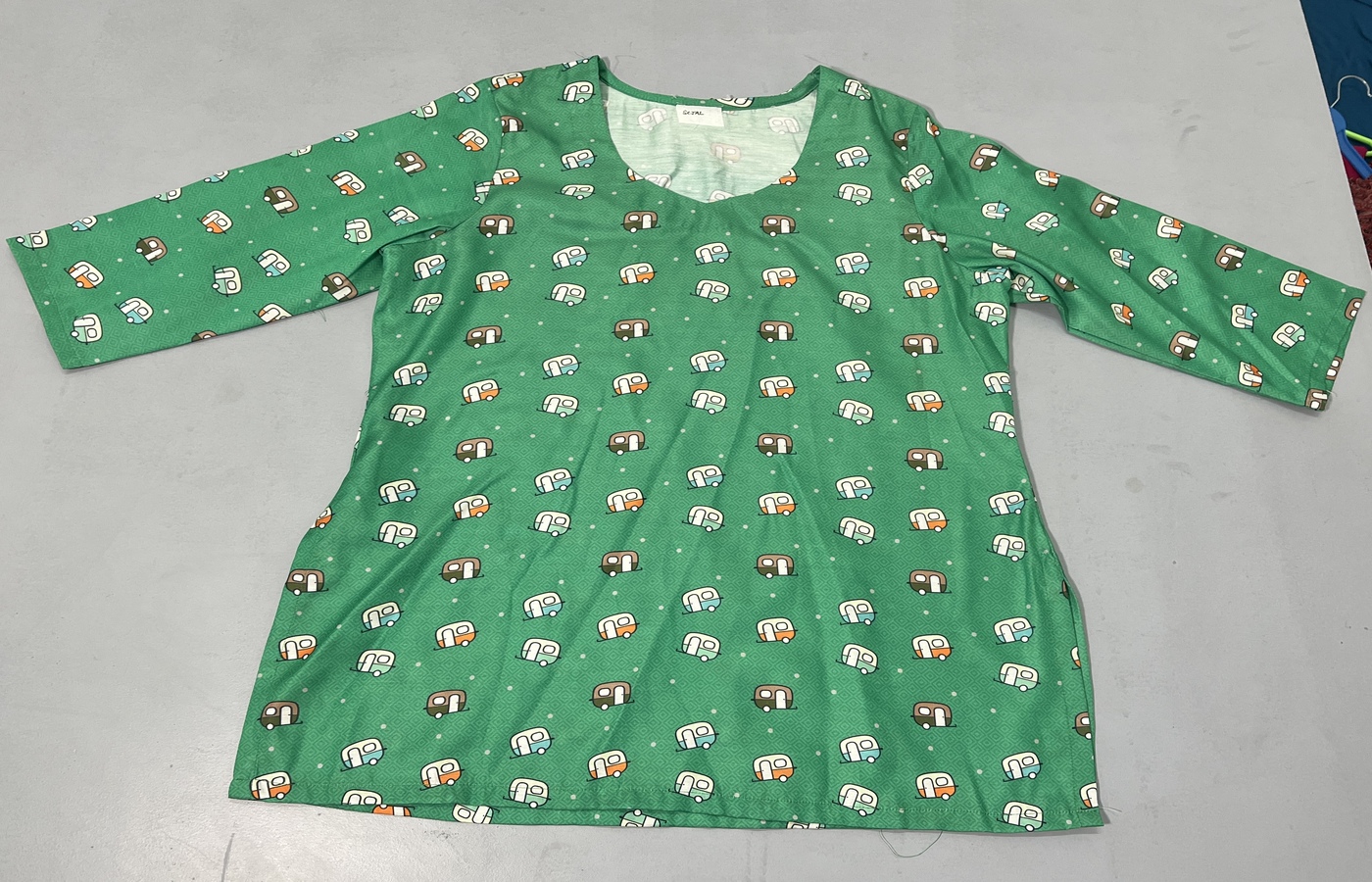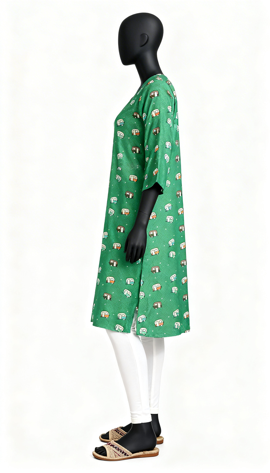 Green Printed Kurti features playful printed cotton fabric with three fourth sleeves for formal office wear.