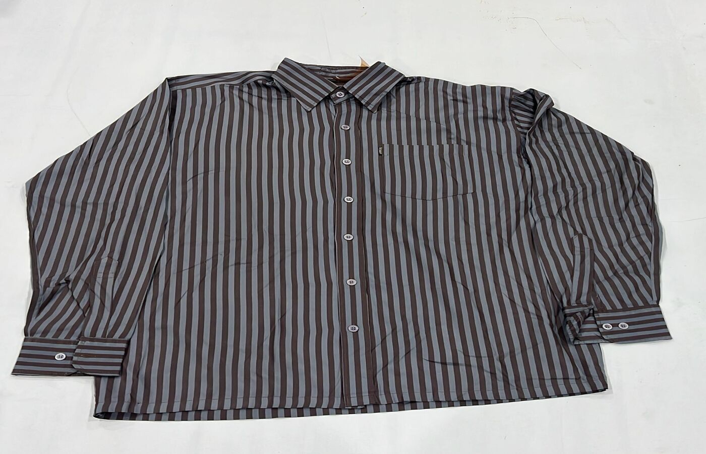 This elegant grey-brown vertical striped shirt offers a refined balance of comfort and style, made from a soft breathable fabric that drapes well for everyday or business wear