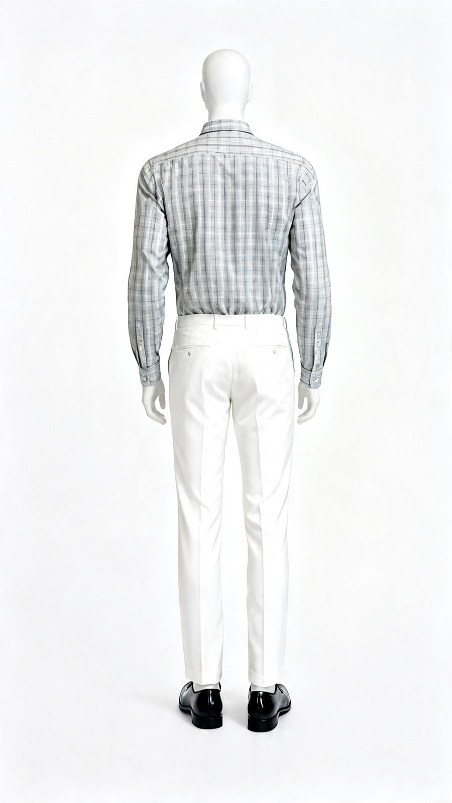 A classic light grey checkered shirt designed for office and formal wear. Made from comfortable cotton-blend fabric with a regular fit, offering a neat spread collar and polished everyday style.