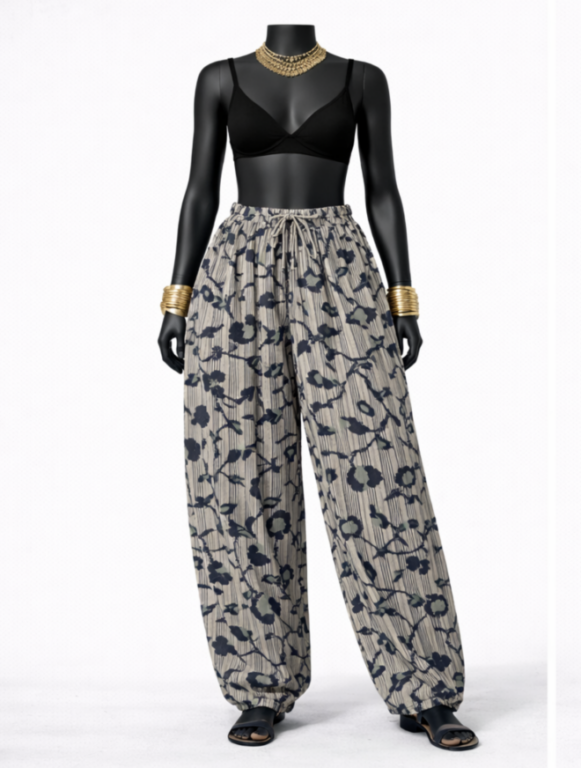 Grey Floral Salwar Pants designed for comfortable daily traditional wear.
