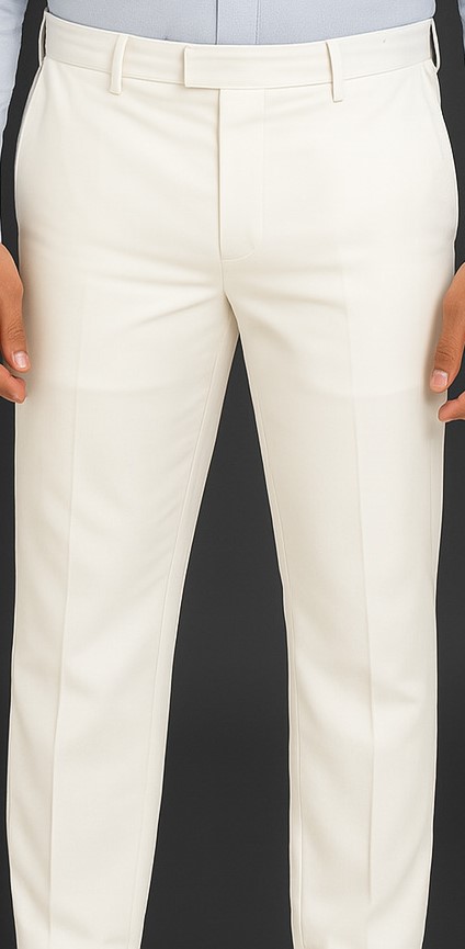 Ivory Slim Fit Trousers, Slim fit ivory formal trousers with front crease, back welt pockets, and a flat front waistband for a refined look.