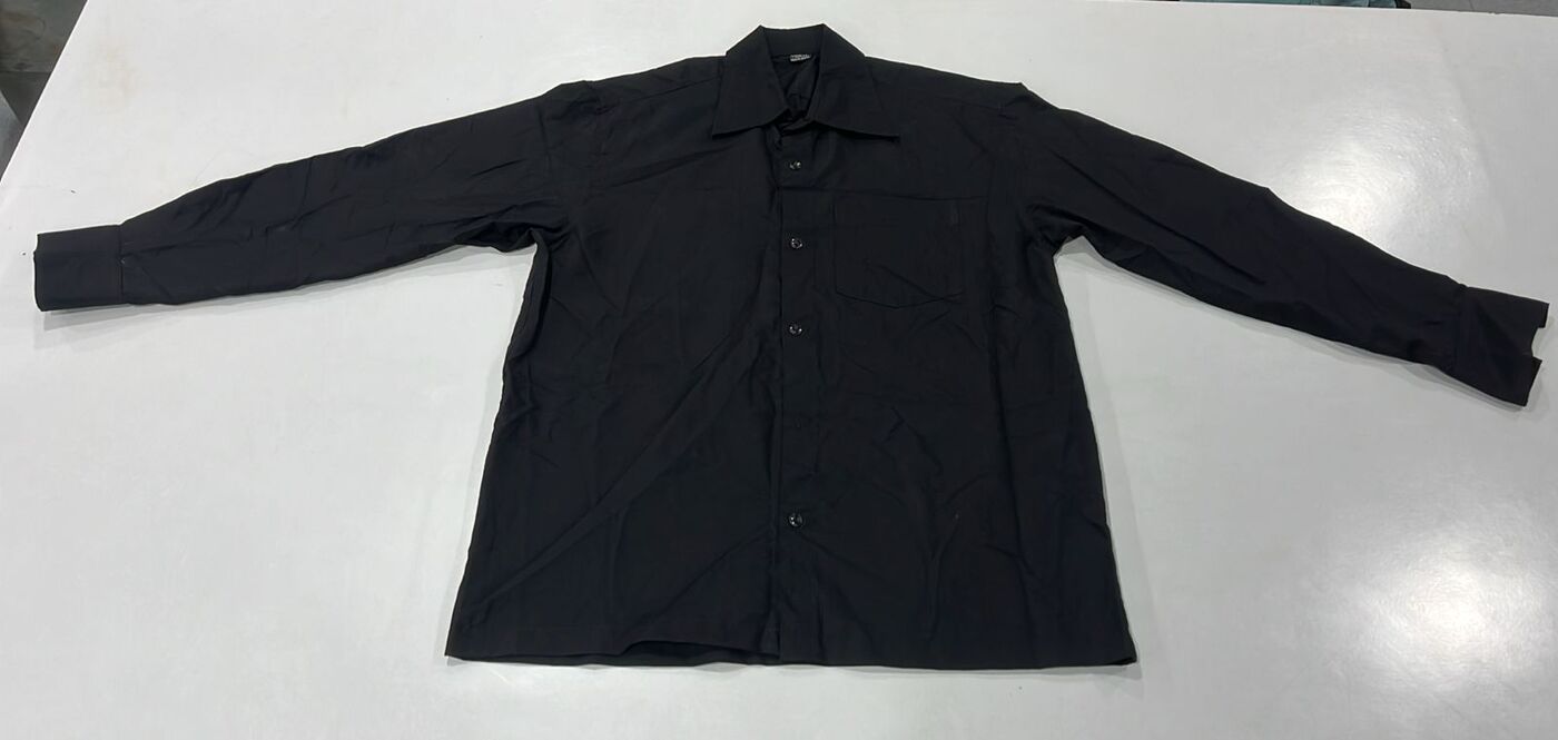 Classic jet-black poly-cotton shirt with a sleek finish, suitable for parties, workwear, and evening outings.
