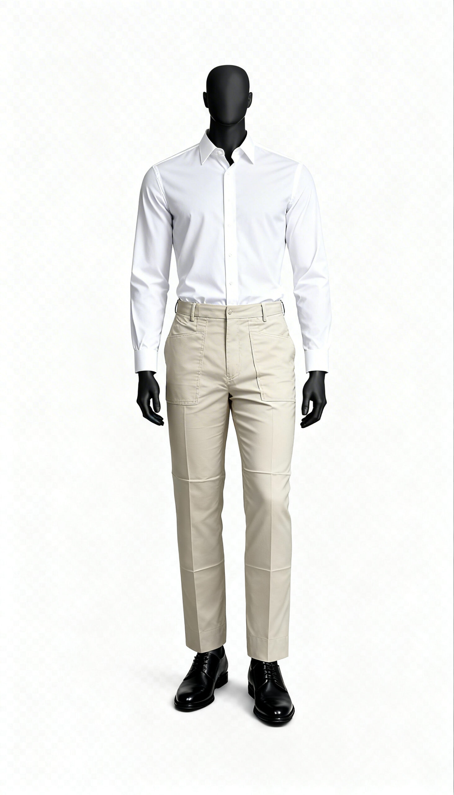 Light beige solid trousers suitable for smart casual and semi-formal styling.