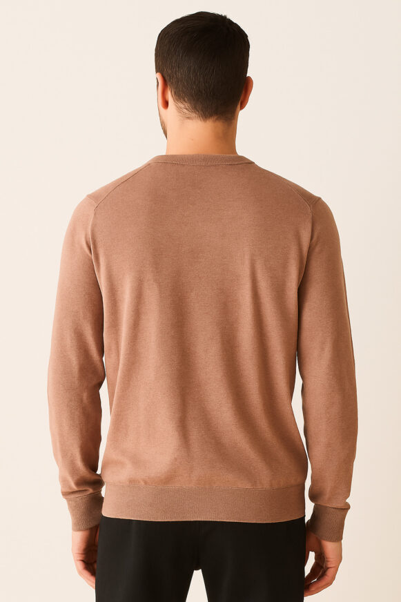 This classic light brown crew neck knit sweater is the perfect blend of style and comfort. Crafted from a soft, fine-gauge fabric, it features full-length sleeves, ribbed detailing at the cuffs and hem, and a subtly contrasting neckline for a refined finish. The versatile shade makes it ideal for both casual and semi-formal occasions. Its tailored fit ensures a clean silhouette while providing ease of movement.