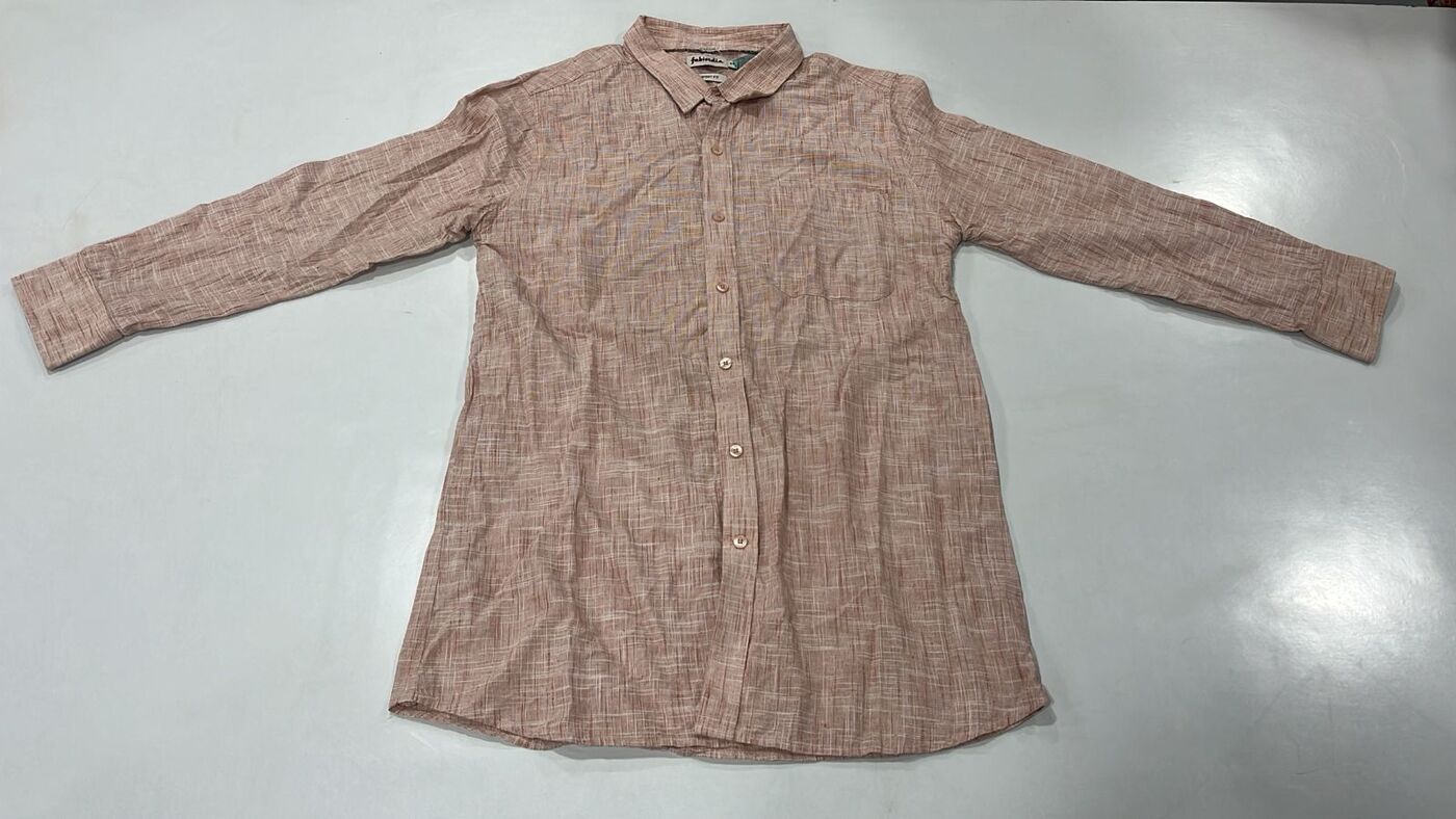 Light brown shirt with subtle textured line pattern, ideal for both casual and office-ready looks.