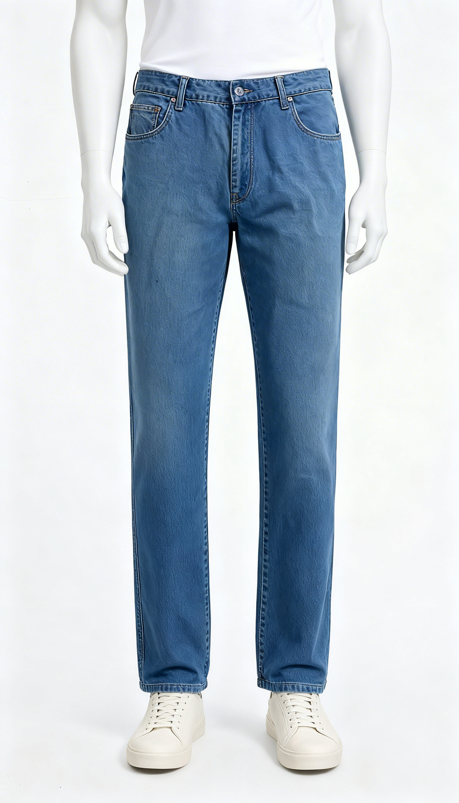 These light blue denim pants offer a relaxed straight-leg fit with a soft, easy-moving fabric. Ideal for daily casual use, they provide comfort, simplicity, and a classic denim look.