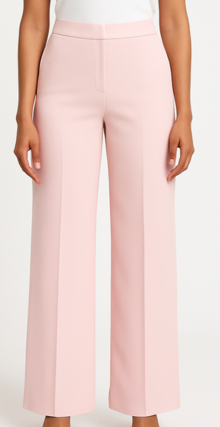 Light Pink Trousers, These elegant light pink trousers offer a clean, polished silhouette with a flattering high-rise fit and structured wide-leg cut. Designed for modern women who seek both professionalism and comfort, the trousers feature sleek seam detailing and a smooth waistband with a concealed closure. Ideal for formal, office, or semi-casual looks.
