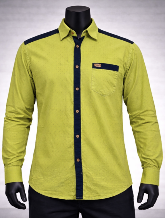 A lime green casual shirt with a micro dotted texture and contrast placket and pocket detailing delivers a refreshing burst of color balanced with thoughtful design elements. The vibrant lime green tone brings energy and individuality to everyday dressing, making it an eye-catching yet wearable choice. Subtle micro dotted texture across the fabric adds depth and dimension, creating a soft visual layer that enhances the shirt’s overall appeal without overwhelming its bright base.