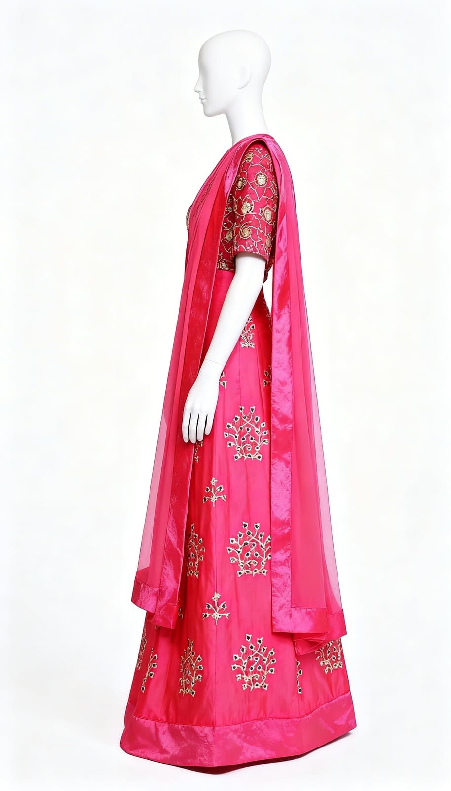 Magenta Pink Anarkali Kurta Set, Pink Embroidered Lehenga Set For Women elegant festive ethnic wear for special occasions.