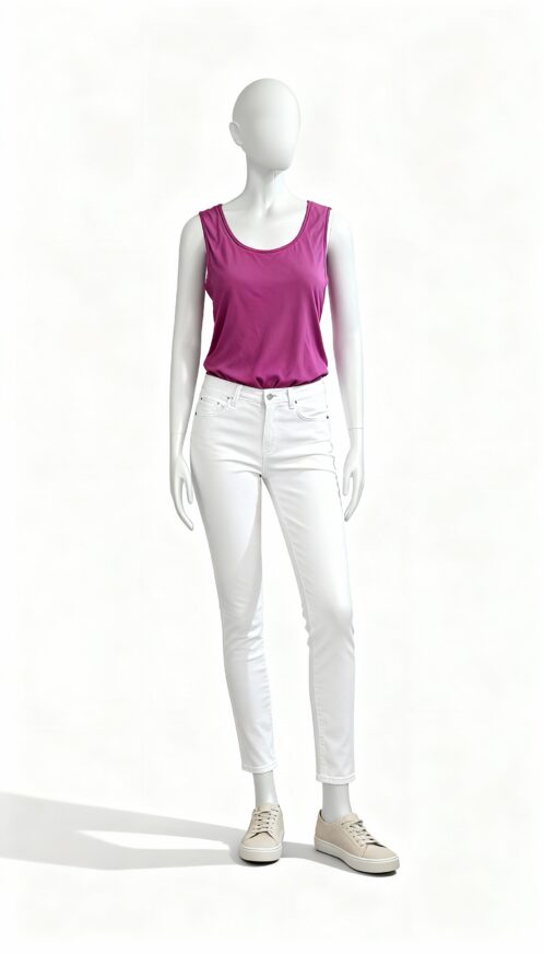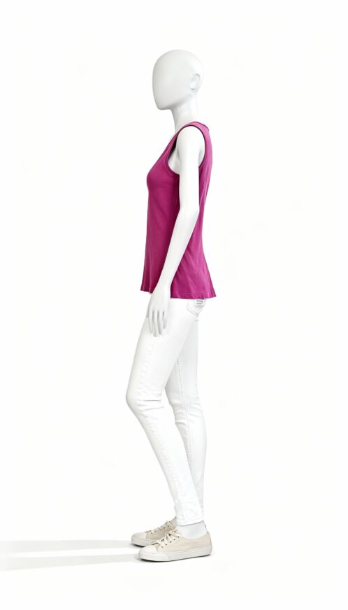 Magenta Sleeveless Tank Top This vibrant magenta sleeveless tank top is designed to add a pop of color and effortless comfort to your everyday wardrobe. Crafted from a soft stretch fabric, it offers a smooth, flexible feel that adapts comfortably to the body while allowing easy movement throughout the day. The fabric’s gentle stretch enhances wearability, making the top suitable for long hours of use without feeling restrictive.