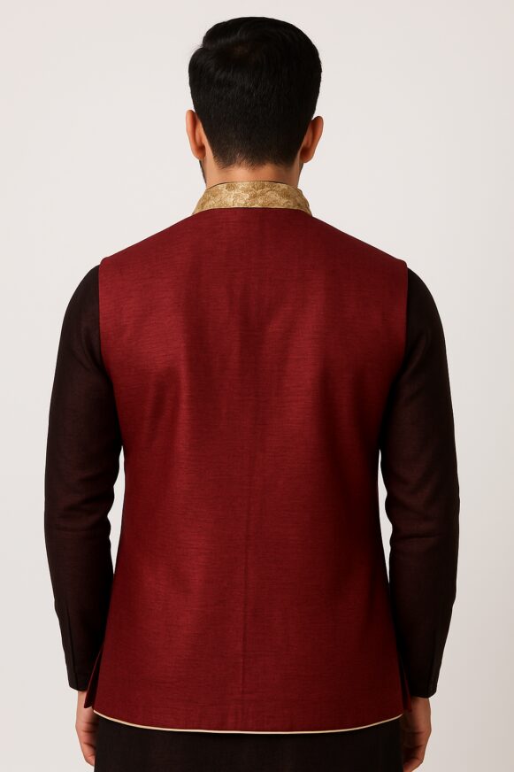 Maroon Nehru Jacket with Beige Collar