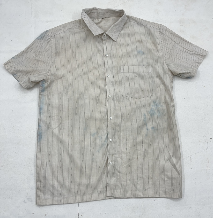 Men’s beige striped shirt with short sleeves, regular fit and button closure, ideal for casual office and everyday comfort.
