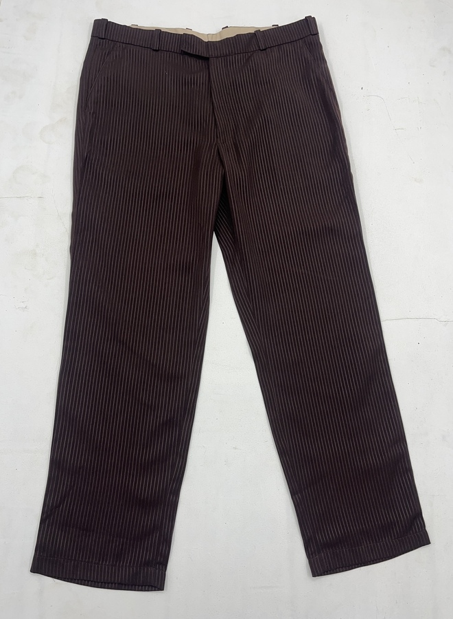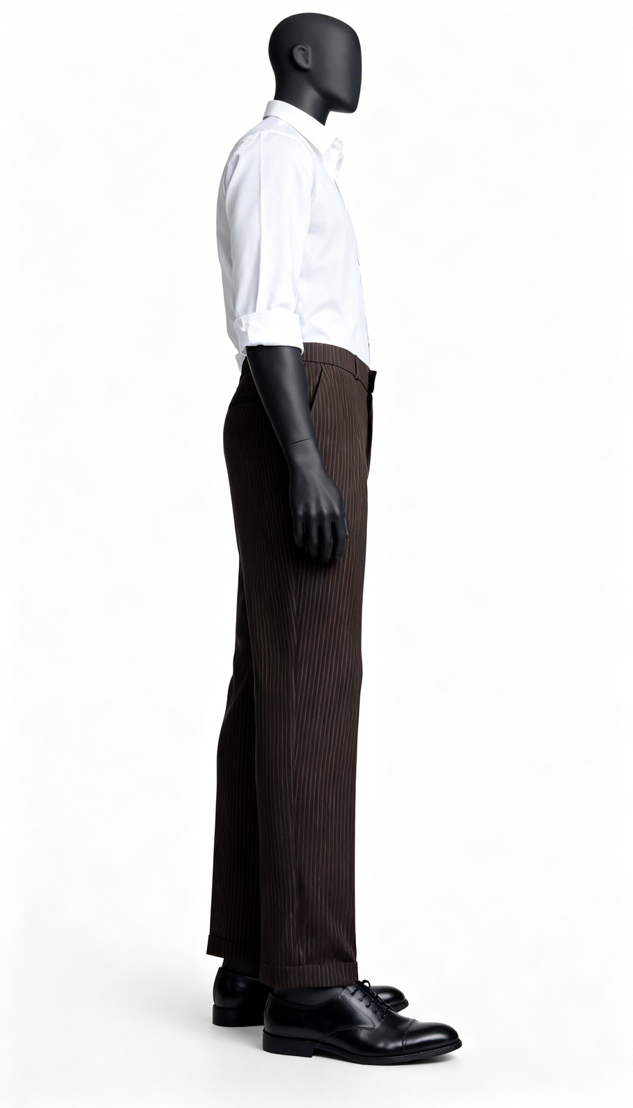 Brown formal trousers featuring pinstripe pattern and tailored fit delivering a refined professional look