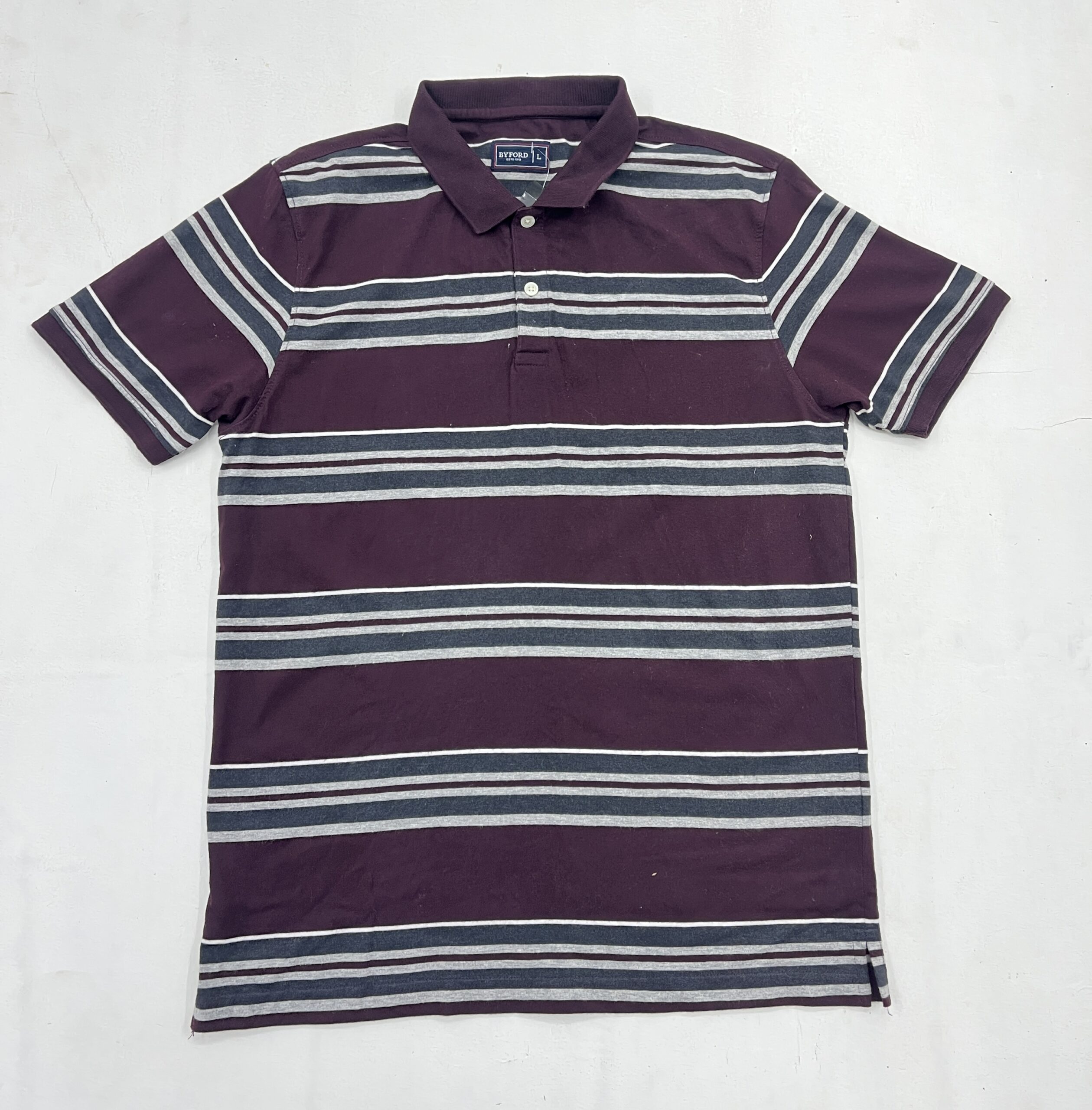 Men maroon polo t-shirt with horizontal stripes, short sleeves and collar neck for everyday comfort