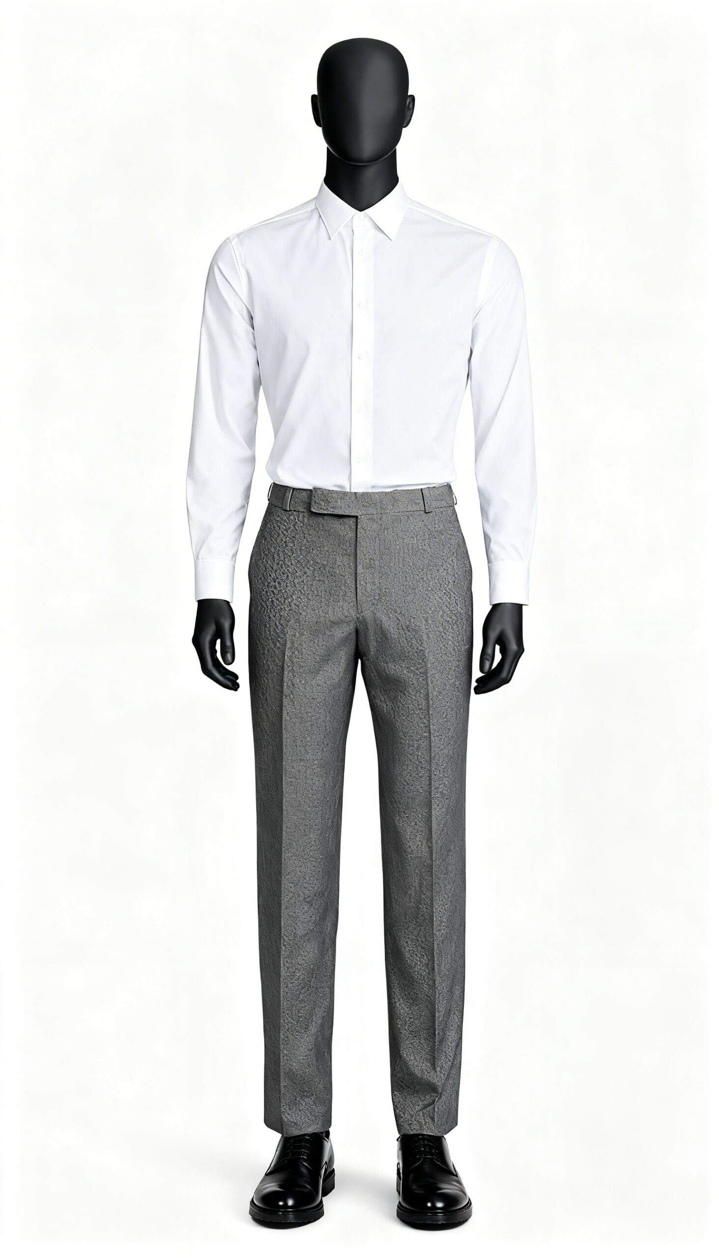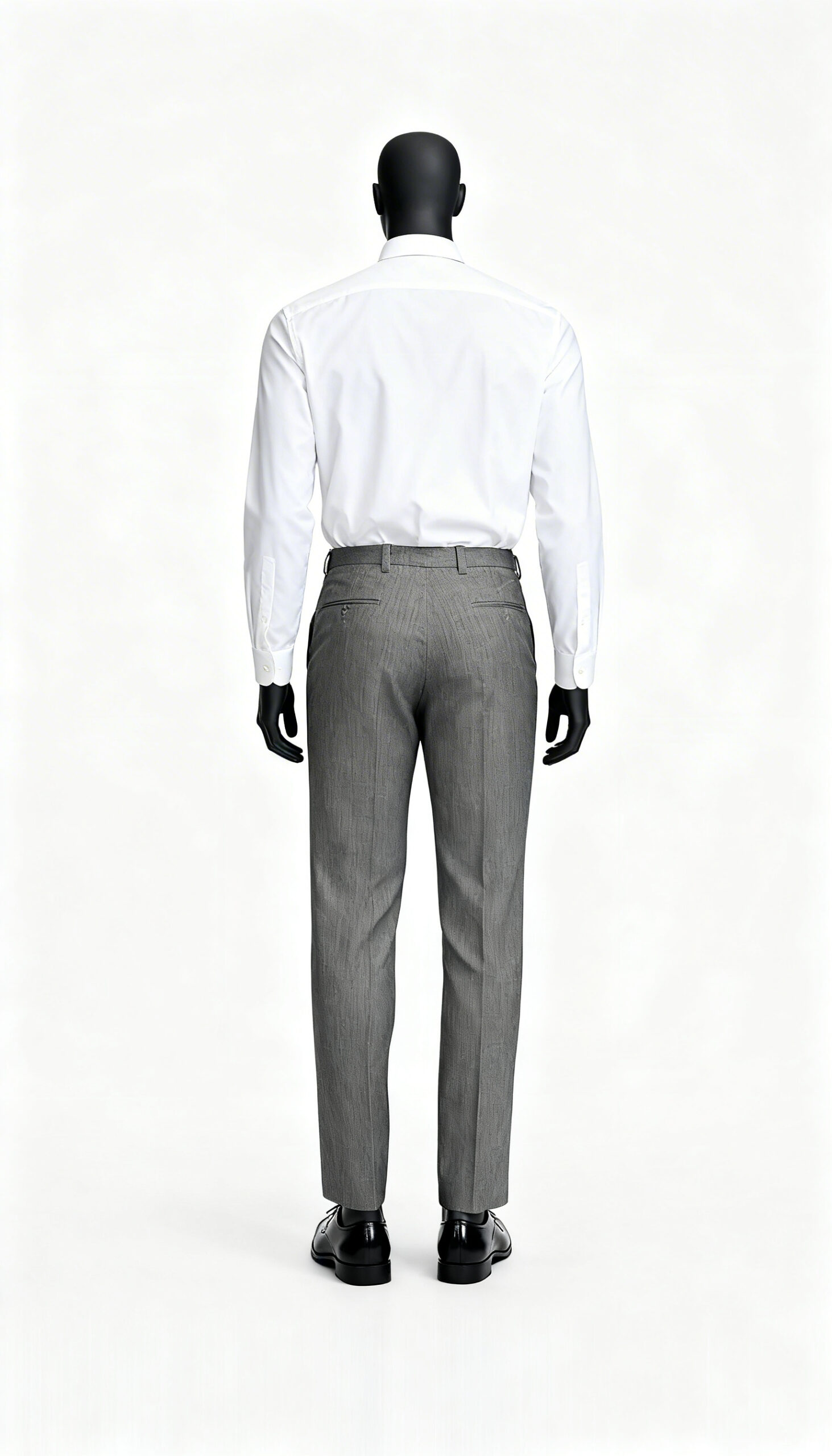 Medium grey formal trousers featuring clean tailoring, straight legs and comfortable everyday fit.