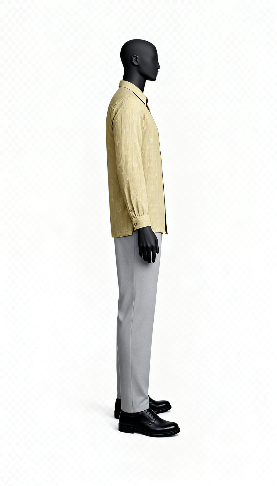 A men’s mustard shirt with subtle woven texture, regular fit, and button closure, ideal for smart daily and office use.