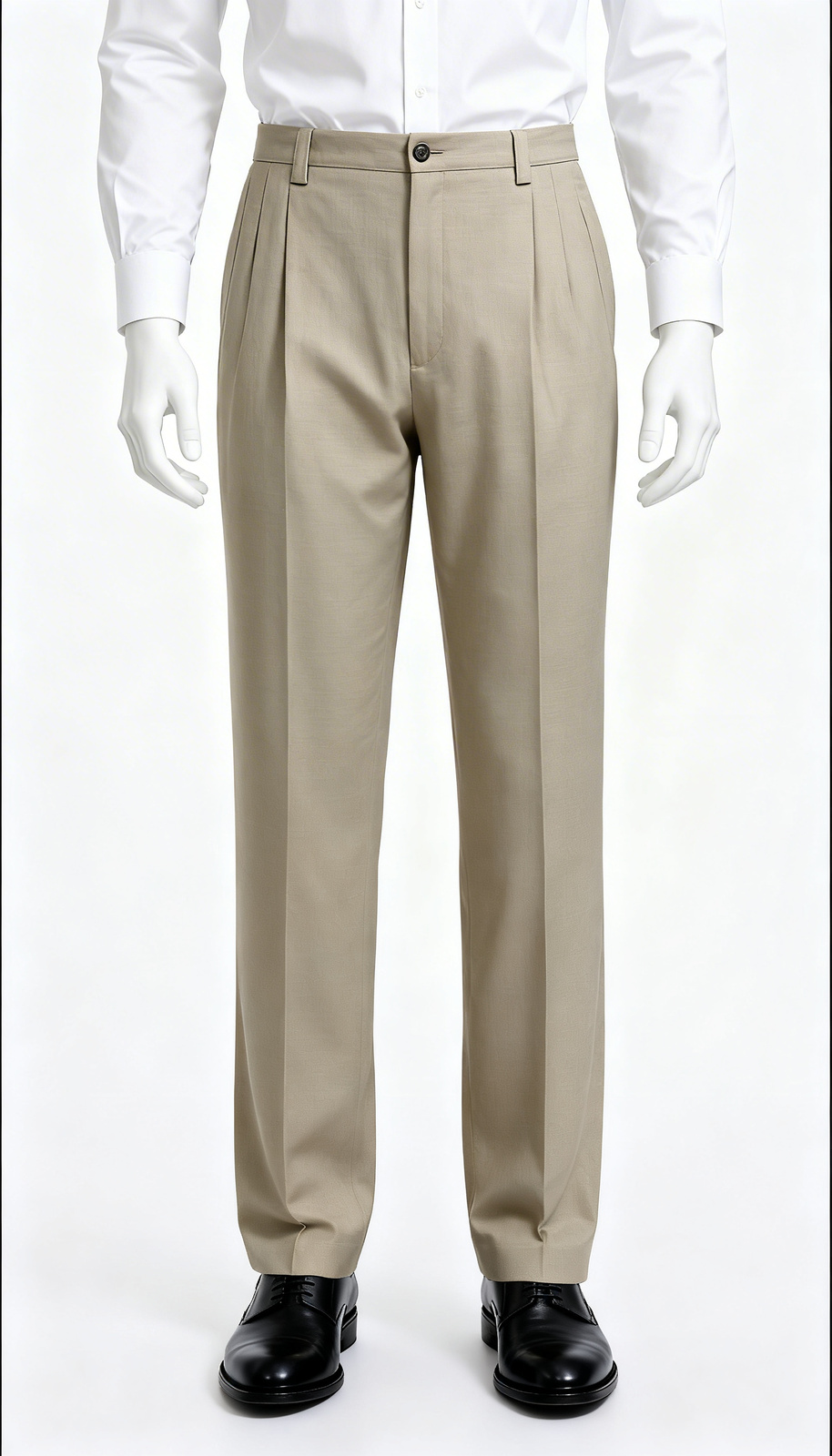 Smooth beige straight-fit pant suitable for office, meetings & daily wear