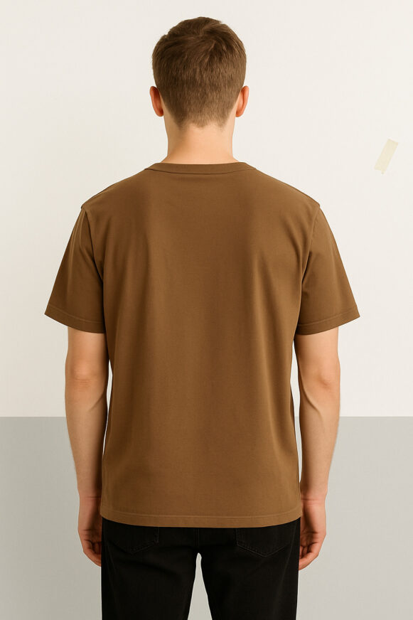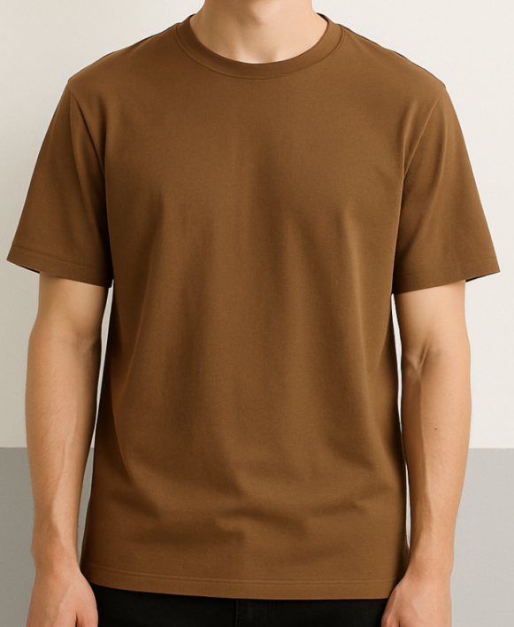 This men’s plain brown crew-neck T-shirt features a clean, minimal design that blends comfort with everyday versatility. Crafted from soft, breathable cotton, it offers a relaxed fit with short sleeves and a straight hem, perfect for casual wear. The smooth matte finish and rich brown color elevate its simplicity, making it a wardrobe staple for any season.