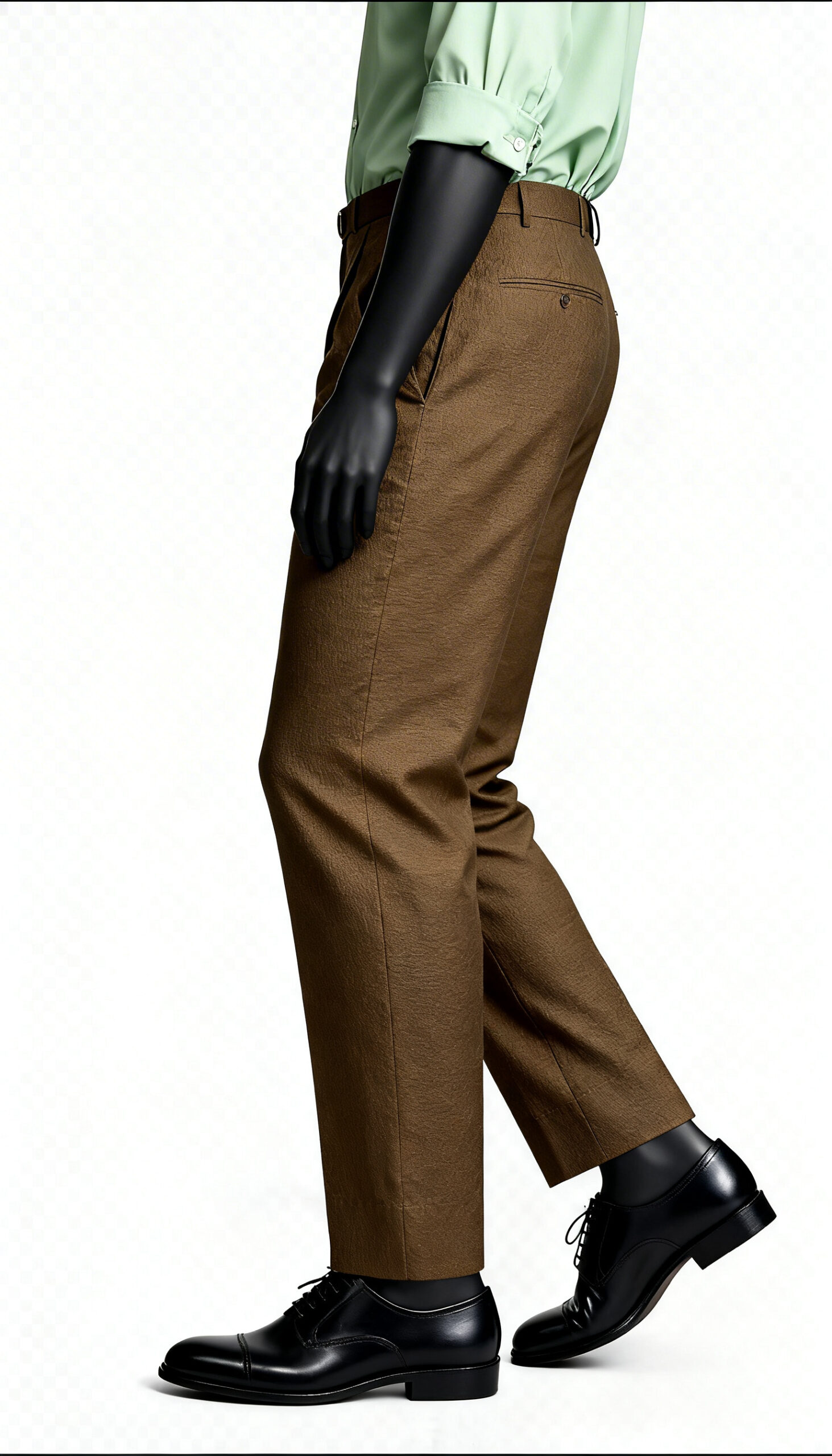 These brown formal trousers offer a versatile and elegant style with a regular fit. Finished with a flat front and straight hem, suitable for office wear and smart casual looks.