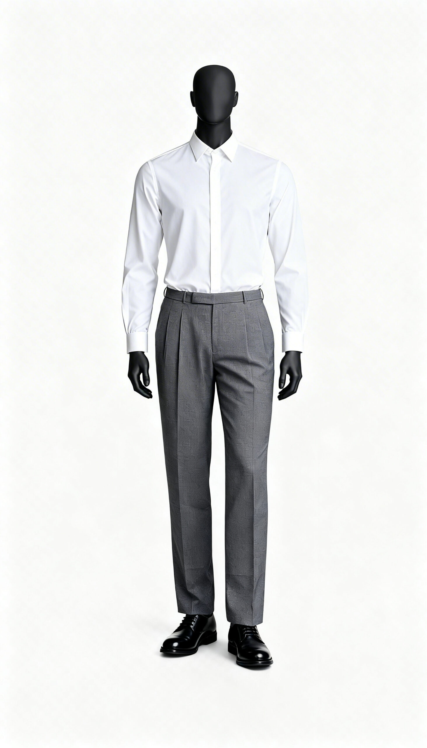 Dark grey textured trousers with a structured regular fit. A smart choice for formal meetings and professional occasions.