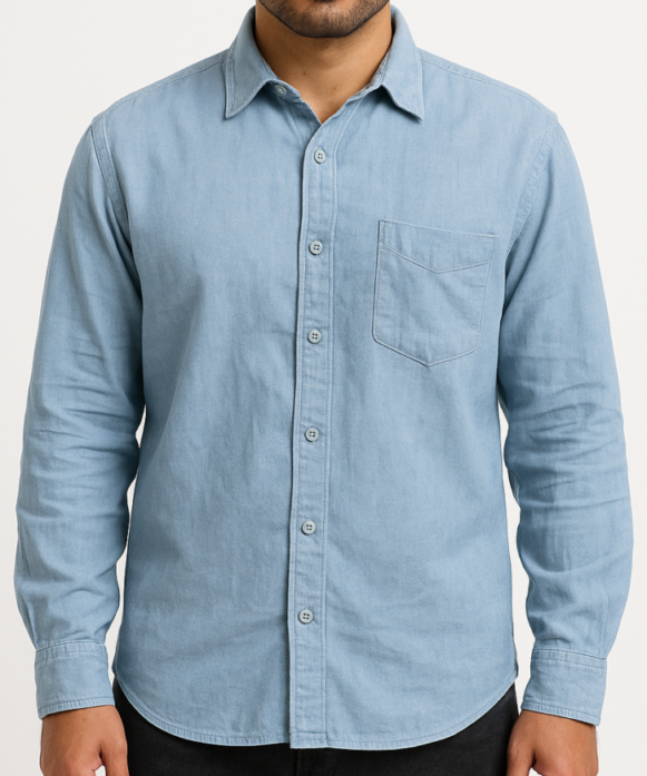 Men’s Light Blue Cotton Casual Shirt, A men’s light blue cotton casual shirt with a regular fit, full sleeves, and a straight hem. Designed with a classic collar and full button placket, making it perfect for everyday wear or casual outings.