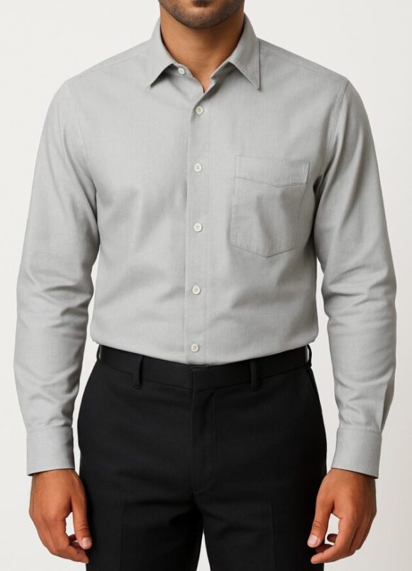 Men’s Light Grey Formal Shirt, Men’s light grey formal shirt with chest pocket and long sleeves – ideal for office and formal settings.