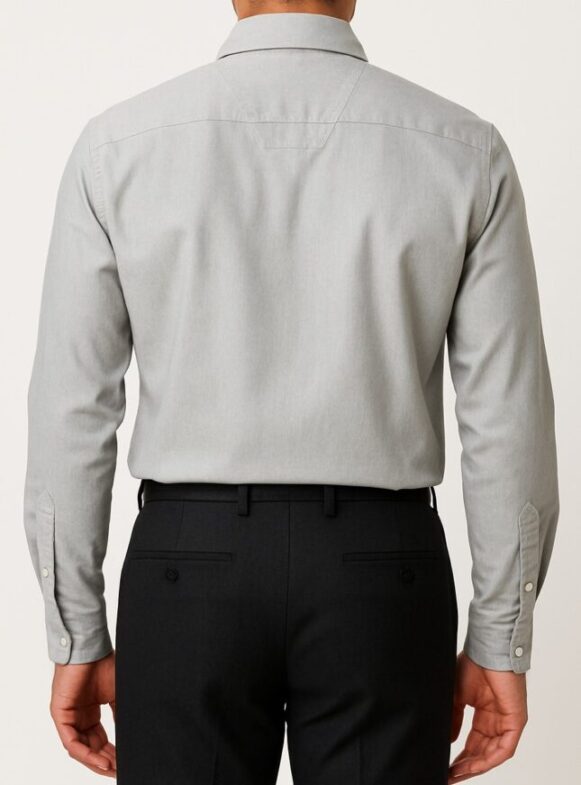 This classic light grey formal shirt is tailored for a sharp, professional look. Crafted from a soft, breathable cotton-blend fabric, it features a pointed collar, long sleeves with button cuffs, and a single chest pocket for subtle functionality. The clean lines and modern fit pair perfectly with formal trousers, making it ideal for office wear, meetings, or formal occasions. The shirt’s back features a clean, pleat-free design with a reinforced yoke for structure and durability.