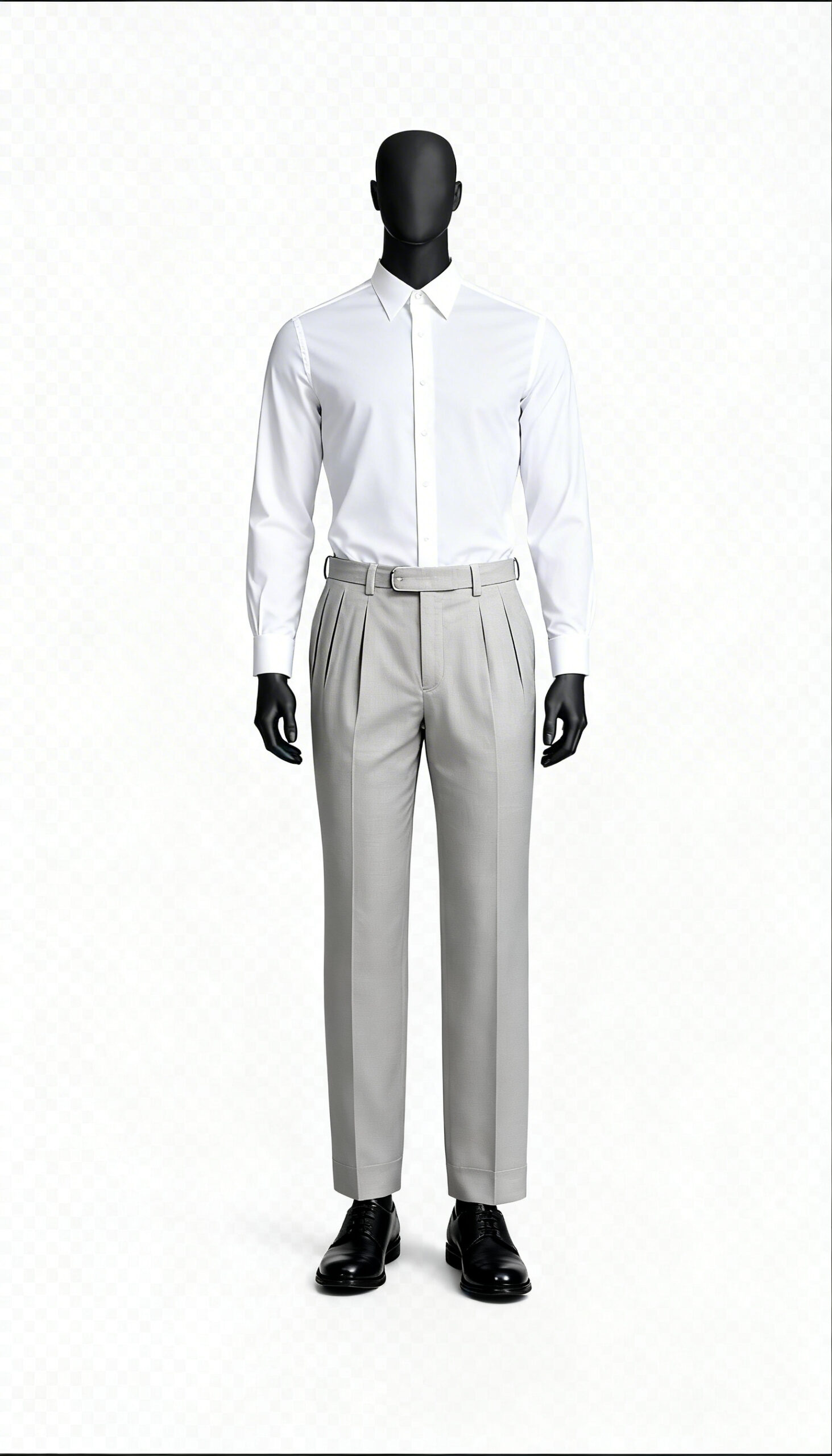 Light grey trousers offering a refined and professional appearance. Ideal for office meetings and formal settings.