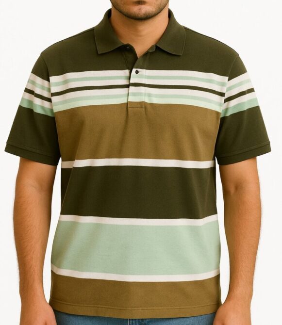 Men’s Olive Green Striped Polo T-Shirt