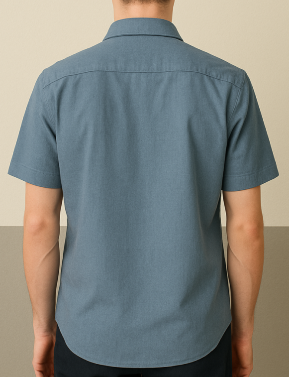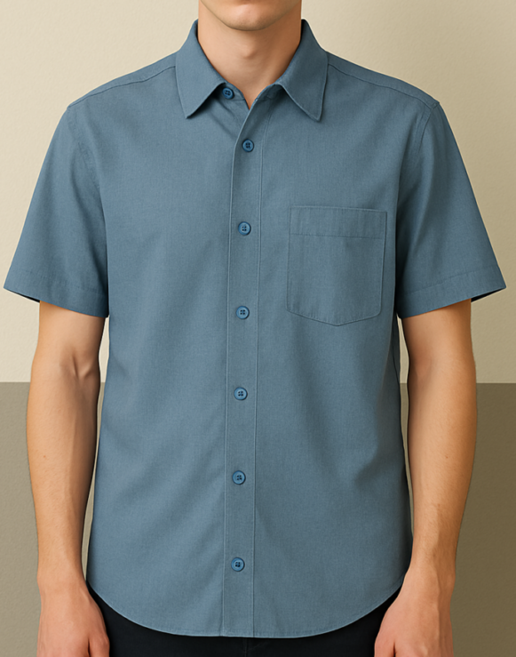 Stay effortlessly stylish with this men’s short sleeve shirt in a calm slate blue shade. Made from a soft, breathable cotton-blend fabric, this shirt features a classic collar, a full button-down front, and a single chest pocket for everyday functionality. The structured fit with a rounded hem adds to its sharp yet relaxed appeal. Ideal for casual outings, summer workwear, or layering under jackets