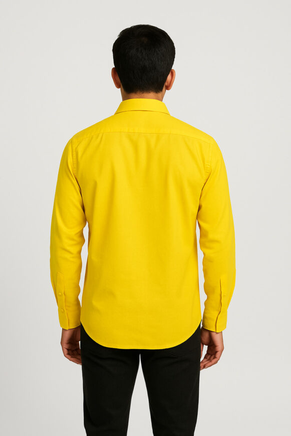 Inject a burst of vibrant color into your wardrobe with this bright yellow men's shirt. Crafted from a premium cotton blend, this shirt features a classic design with a pointed collar, a chest patch pocket, and full sleeves with buttoned cuffs. The smooth matte finish and solid color lend it a clean and polished look—perfect for both casual Fridays and weekend outings. The shirt is tailored in a regular fit for all-day comfort and style.