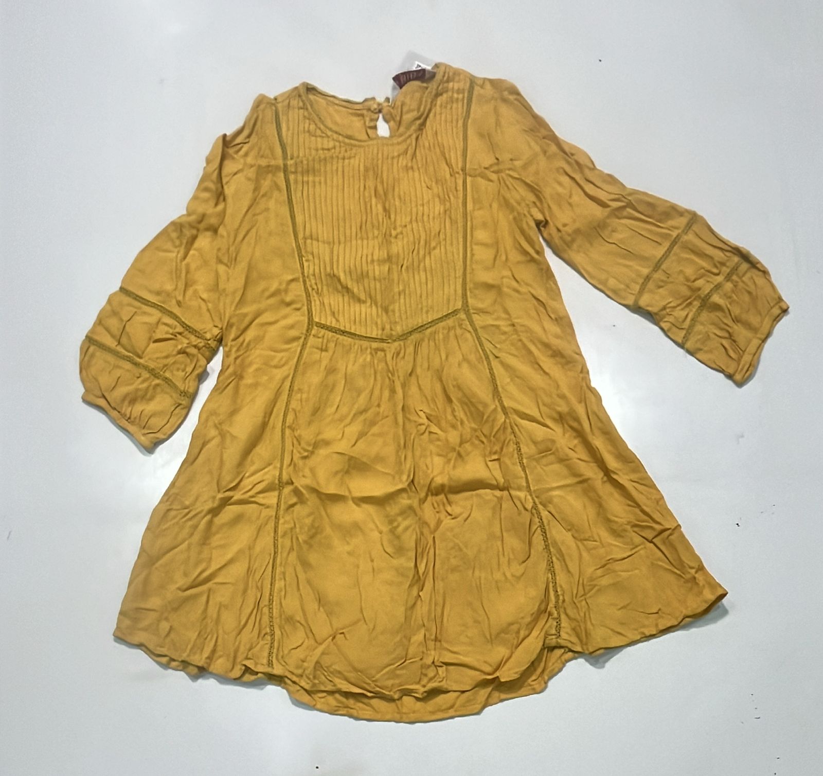 Mustard Yellow Cotton Kurta, Mustard yellow cotton kurta with 3/4th sleeves, pin-tuck front, ladder lace detailing, and wide-legged matching palazzos.
