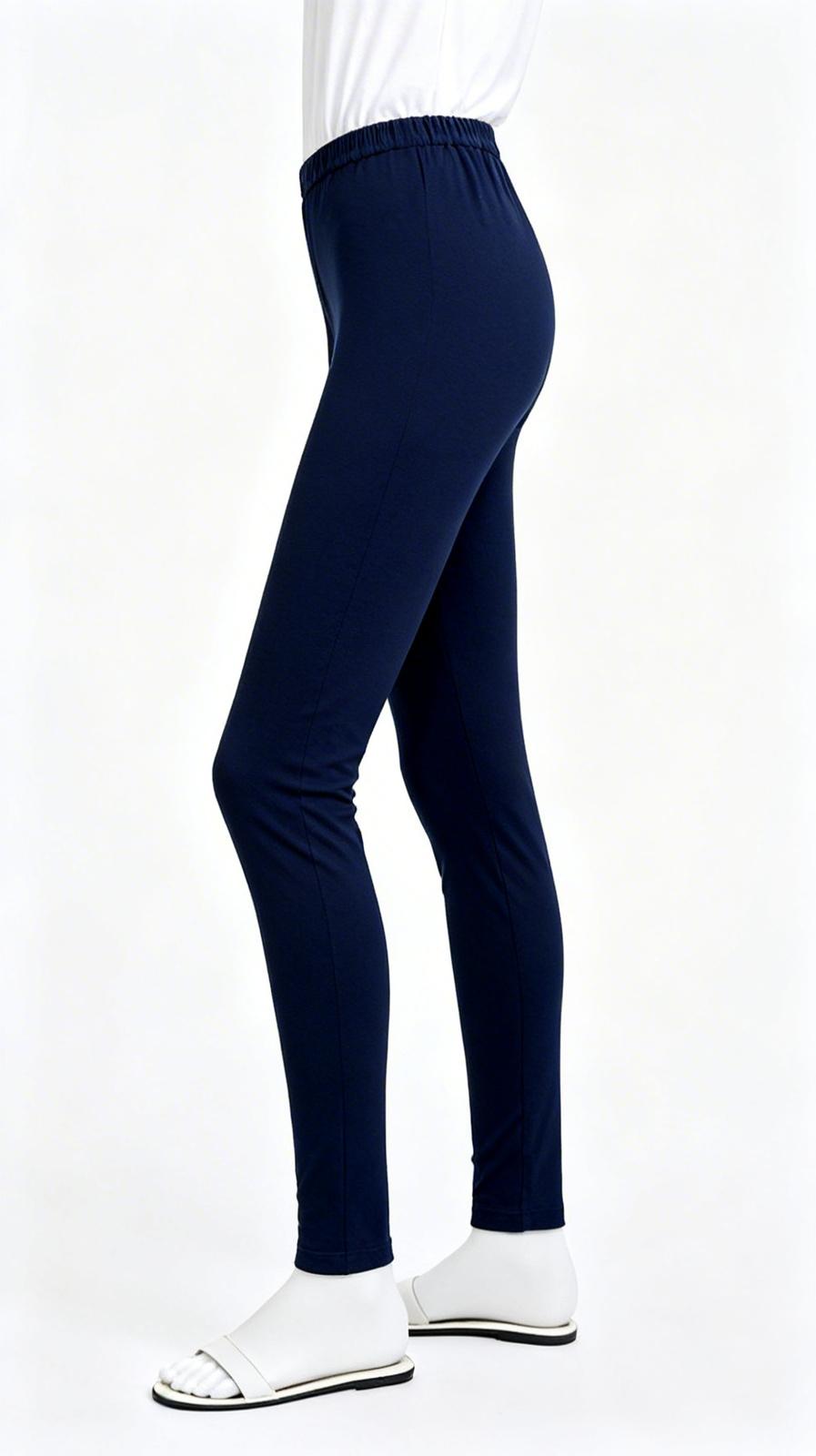Comfortable navy blue leggings crafted from soft, stretchable fabric for all-day wear. Features a flexible elastic waistband and slim-fit silhouette, perfect for pairing with kurtas, tunics, or casual tops. Ideal for daily, travel, or lounge wear.