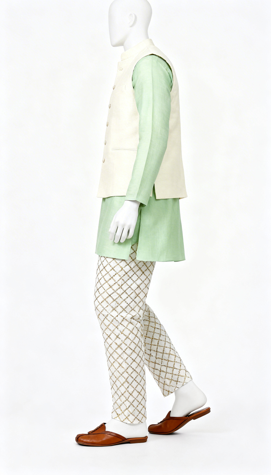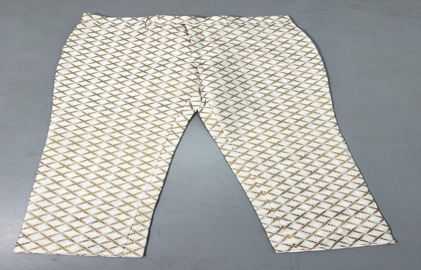 Off White Checked Formal Trouser Off White Checked Formal Trouser highlights strong checked surface with metallic visual depth. Tailored structure and defined waistband maintain crisp office-ready presentation. The refined fabric offers structured fall while ensuring breathable comfort for long formal settings. Designed for traditional and contemporary environments requiring statement yet disciplined wardrobe continuity across camera-friendly and formal gatherings.