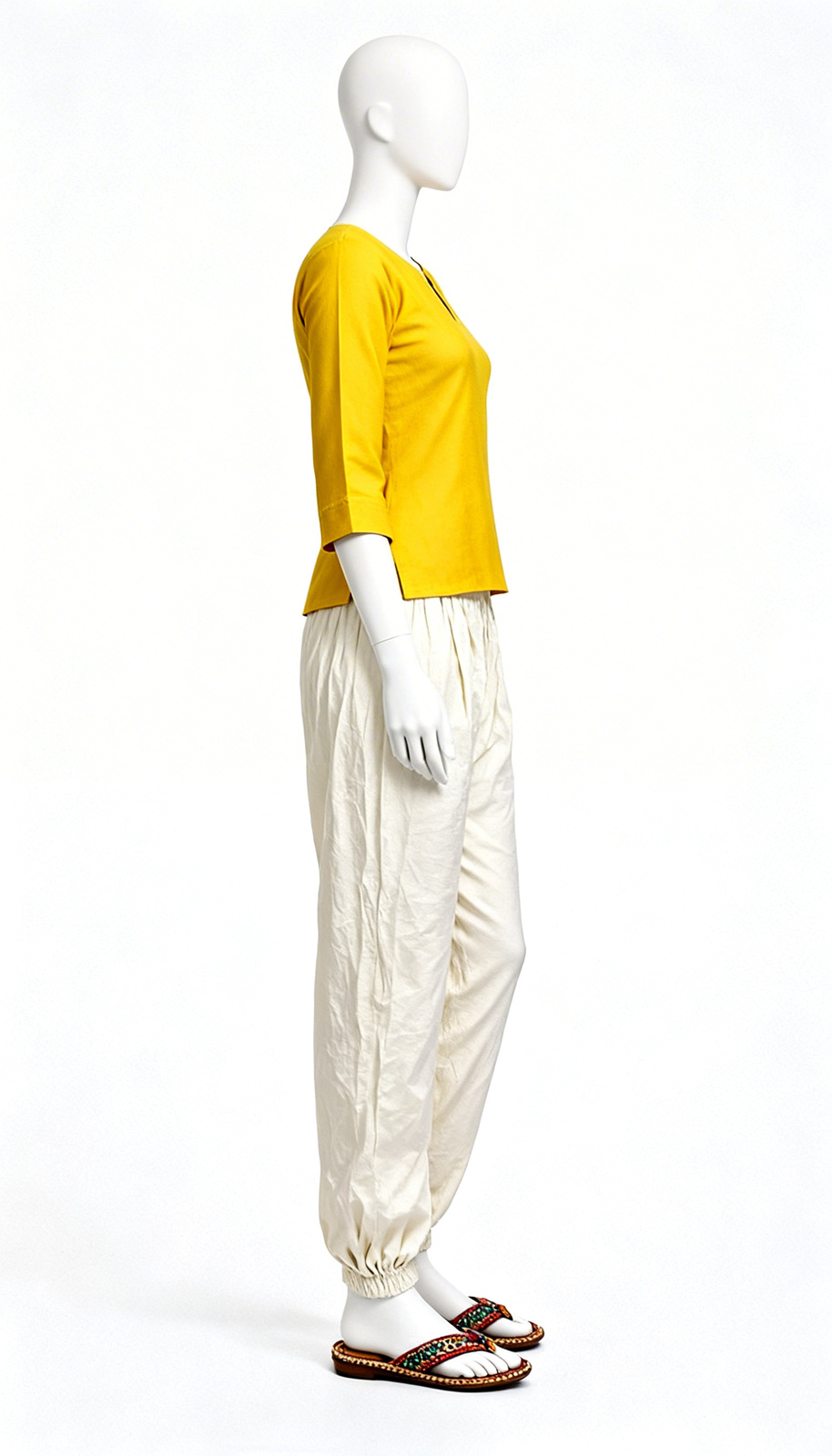 This white churidar pajama is crafted from breathable soft cotton, offering a relaxed and comfortable fit suitable for long wear. Designed with an elastic waistband, adjustable drawstring, and tapered ankle cuffs, it pairs perfectly with kurtas for weddings, festive events, or traditional functions. Ideal for ethnic rental collections.