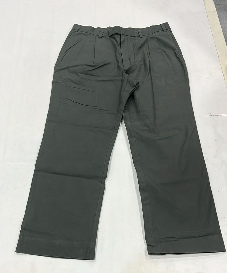 Olive green formal trouser with subtle colour tone and clean tailored finish.