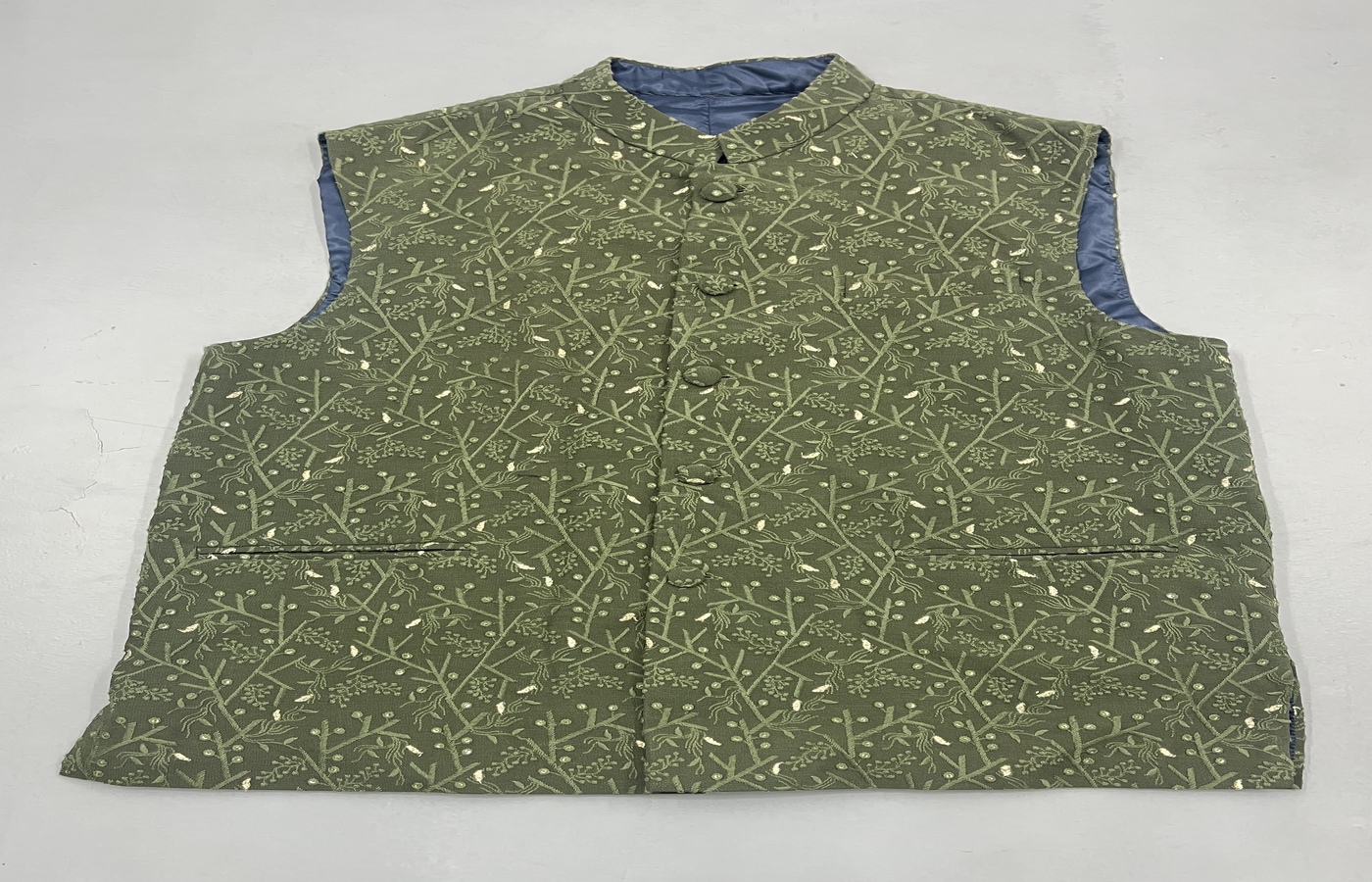 Olive Green Nehru Jacket Olive Green Nehru Jacket Olive Green Nehru Jacket features woven design with structured tailored fit and front open button closure. Designed for festive wear, this sleeveless jacket enhances traditional styling with clean finish and structured feel. The repeat friendly construction ensures wardrobe continuity, while the camera-neutral surface supports celebration scenes with aspirational energy and heritage craft influence suitable for privileged youth expression.
