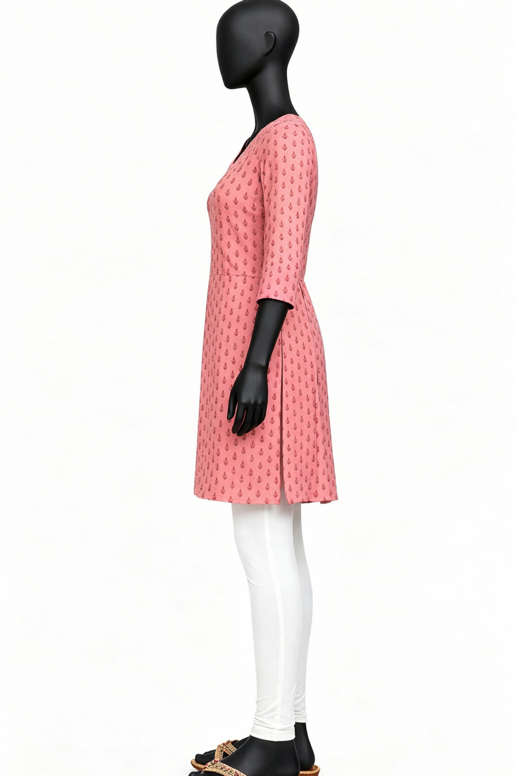 Peach Printed Kurti combines printed surface design with regular fit structure and straight hemline creating soft structured professional presence for office settings.