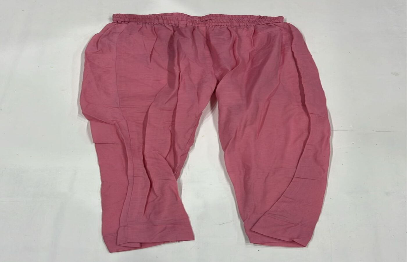 This pink tapered pant is crafted from lightweight, breathable fabric that ensures comfort throughout the day. The elastic waistband provides a secure fit, while the straight-tapered silhouette offers a clean and elegant ethnic look. Perfect for pairing with kurtas, festive tops, or casual ethnic outfits—an ideal, versatile choice for rental collections.
