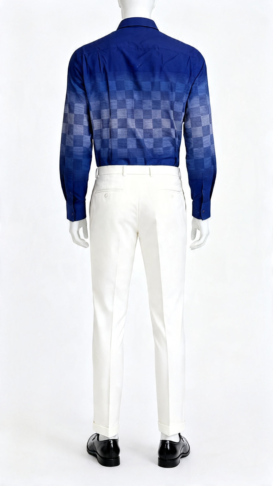 This royal blue gradient check shirt blends modern style with comfort, featuring a smooth cotton finish and distinctive fading check pattern. Ideal for outings, work or smart casual events, it offers a structured collar, secure button closure and a relaxed shape that pairs seamlessly with jeans, chinos or formal trousers for confident daily wear.