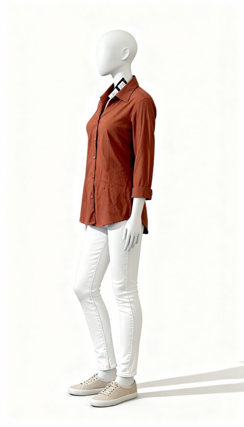 Rust 3/4 Sleeve Button-Down Shirt  This rust button-down shirt is designed to offer a refined balance of minimal style, comfort, and everyday versatility. The rich rust shade adds warmth and character to the shirt, creating a polished look that stands out while remaining subtle and sophisticated. Its smooth, clean finish enhances the overall appearance, making it suitable for a variety of settings.