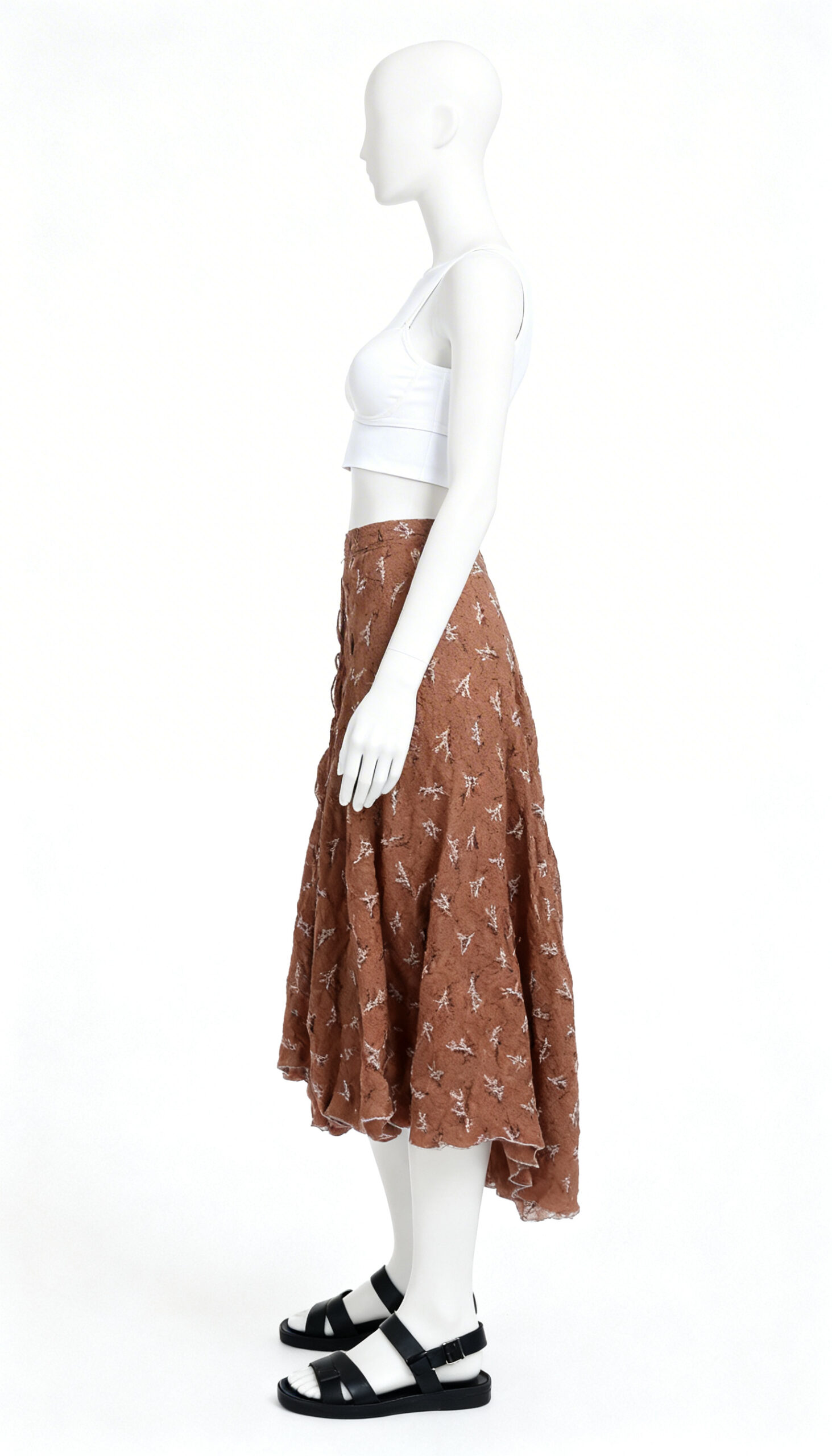 This rust printed ethnic flared skirt offers a warm, earthy, and traditional aesthetic perfect for casual ethnic outings, day functions, festive gatherings, or everyday Indo-fusion wear