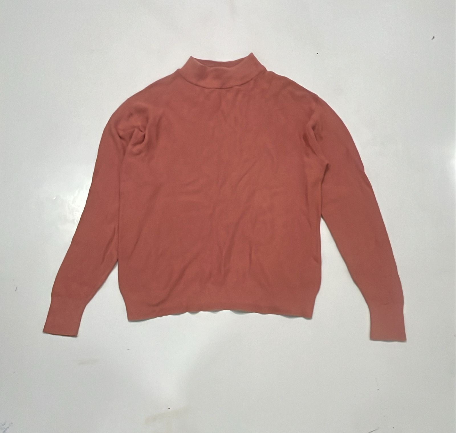 Rust Ribbed Mock-Neck Knit Top, Soft rust-colored full sleeve top for women with ribbed texture and mock neck. Perfect for casual styling with a flattering fit.