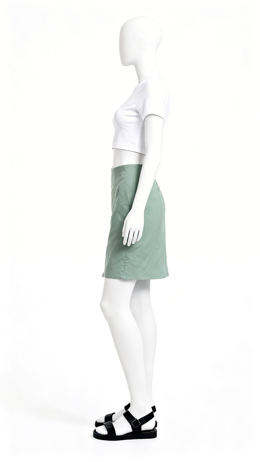 Sage green formal pencil skirt with clean tailoring, sleek fit, and office-ready elegance for smart styling.