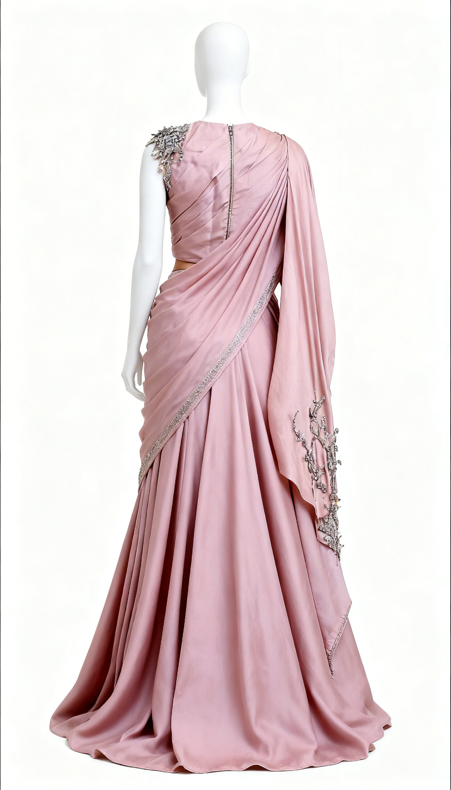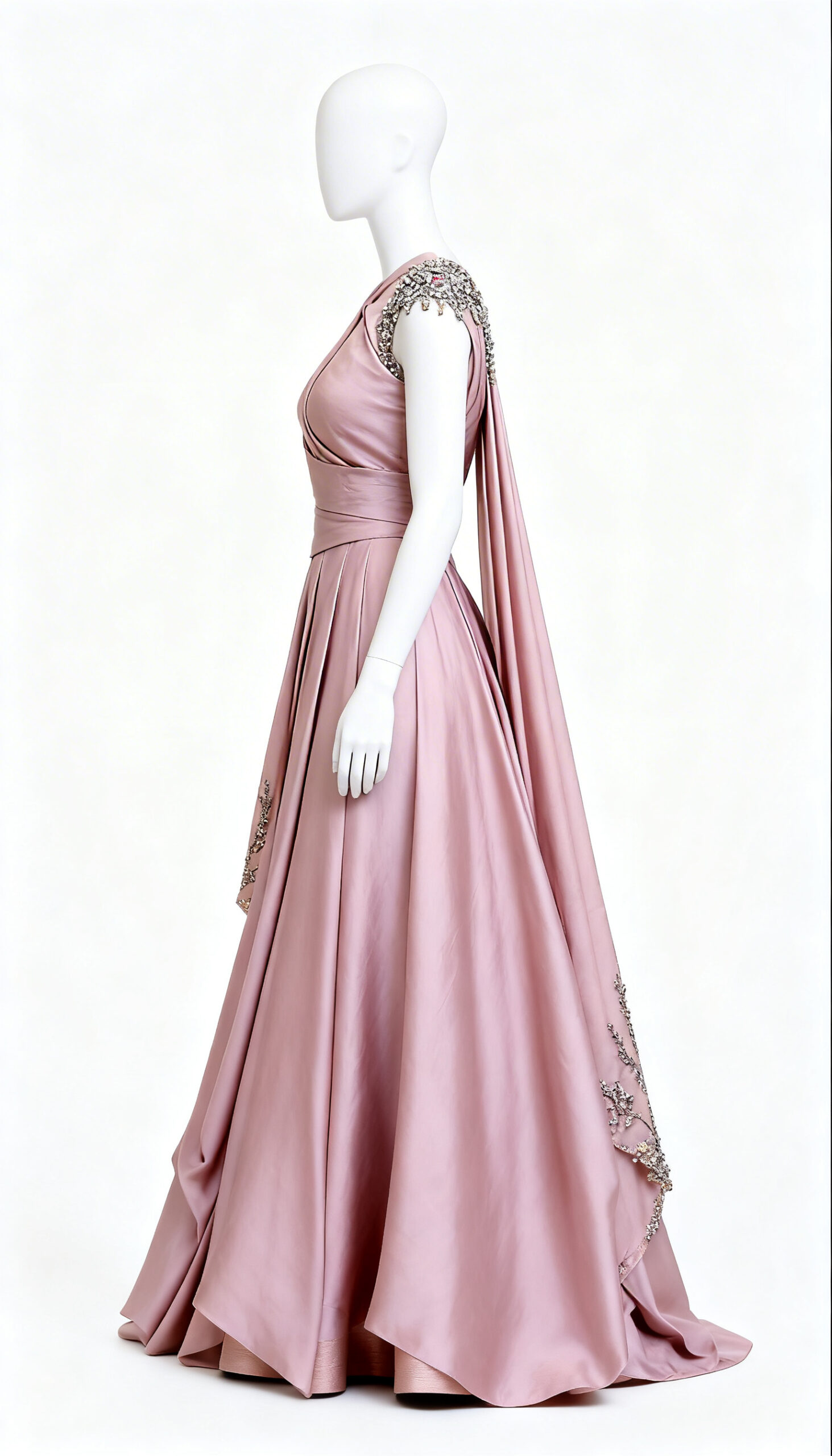 Blush Pink Embroidered One Shoulder Floor Length Gown offers a graceful look with premium fabric, elegant finish, and occasion-ready appeal for modern wardrobes.