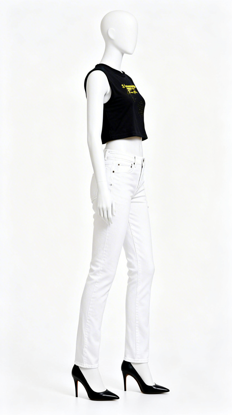 A sleeveless solid crop top with graphic print