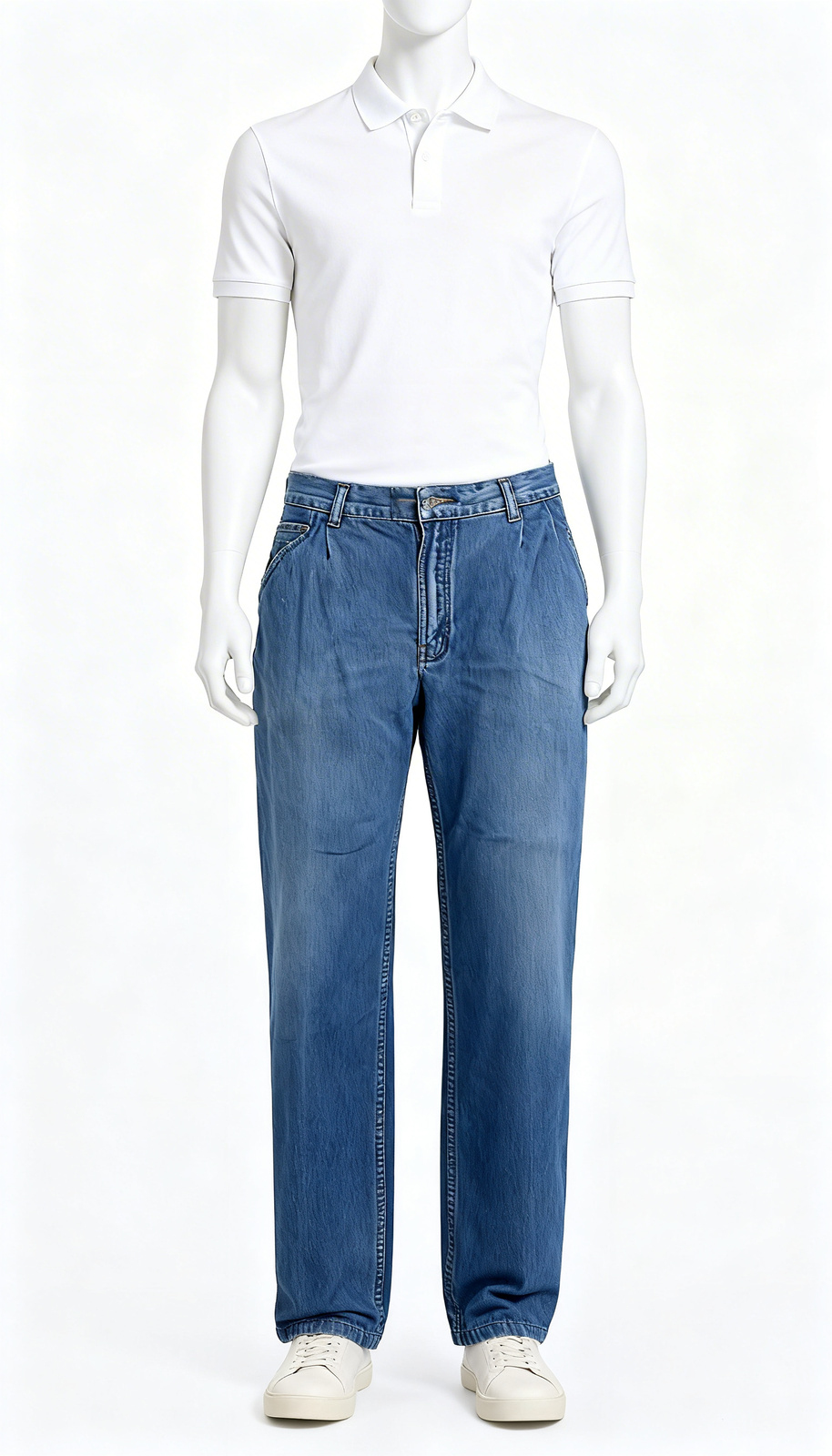 These relaxed-fit wide blue jeans feature a soft washed finish, roomy straight-cut legs, and a comfortable silhouette perfect for daily wear. Their simple, versatile design pairs easily with casual shirts or tees, offering effortless style and reliable comfort for everyday use.