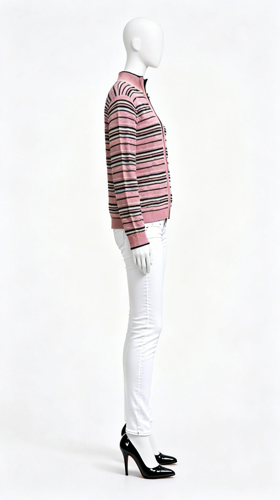 Striped sweatshirt with front zip closure and ribbed cuffs for casual winter wear
